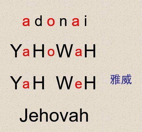 原因是主前第六世纪的犹太人被掳到巴比伦后,他们不愿在俘掳他们的仇敌面前称呼神的名,因此讳称为 Adonai (音阿多乃,是主的意思)。在抄写经文的时候,便将阿多乃小写抄于YHWH之上端,借以提醒此字的讳读音。