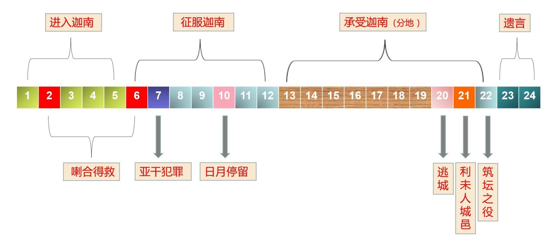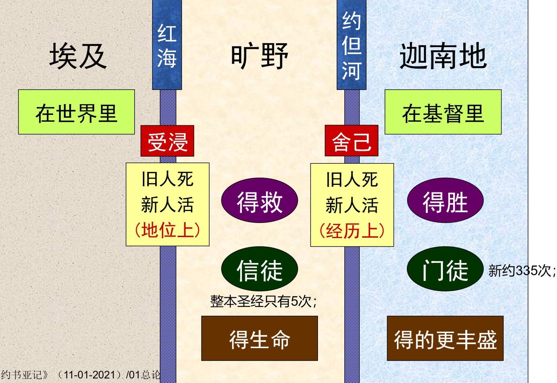 - 留意领袖的传承,约书亚如何接替摩西,带领以色列人进入神应许之地,神如何建立他,他的成长,及书中摩西与约书亚的对比;